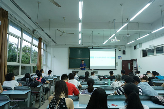 首先,蒋林老师以部分高校的高数分数为切入点,向在座的同学们引出了考研高数的复习方法。随后,他也详细地向大家介绍了其他科目的一些复习方法。他将考研复习划分为基础阶段、提高阶段、强化阶段和冲刺阶段四个阶段,并给同学们解读了各个阶段的复习注意事项。在蒋林老师讲解完毕后给同学们进行了部分问题的现场答疑。随后一名来自电子科技大学的学长上台分享了自己的考研经验,让同学们受益颇多。