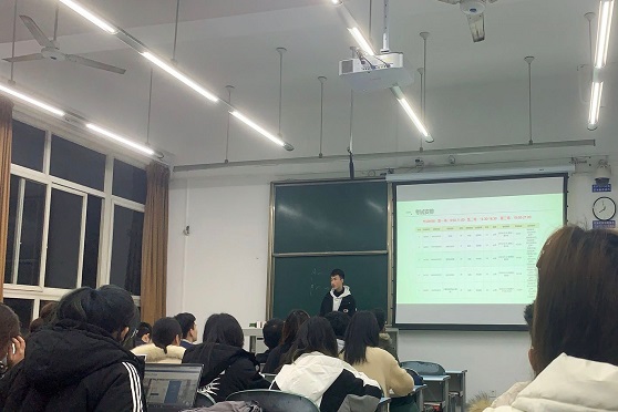 会议随后由2018级张佳旺同学分享自己的学习经验和复习方法,为同学们更有效率性的和计划性的复习提供了意见。同时对大学第一次选课的注意事项进行说明与解答疑惑。