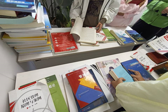 青年志愿者协会整理归类图书,为下午活动的顺利进行做好准备。下午4时,2021级同学们再次到达活动场地,在分类图书中寻找自己心仪的图书并领取。