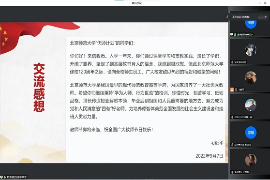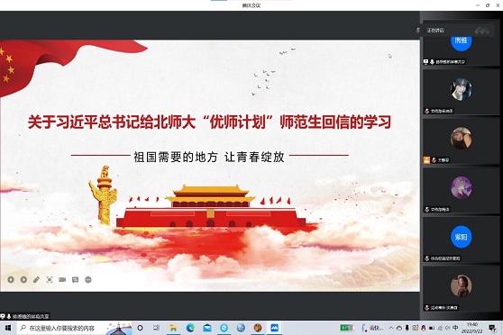 学生会召开线上专题学习会,组织同学们学习习近平总书记给北师大“优师计划”师范生的回信。本次专题学习会由学生会组织部部长陈煦雅主持,午夜av