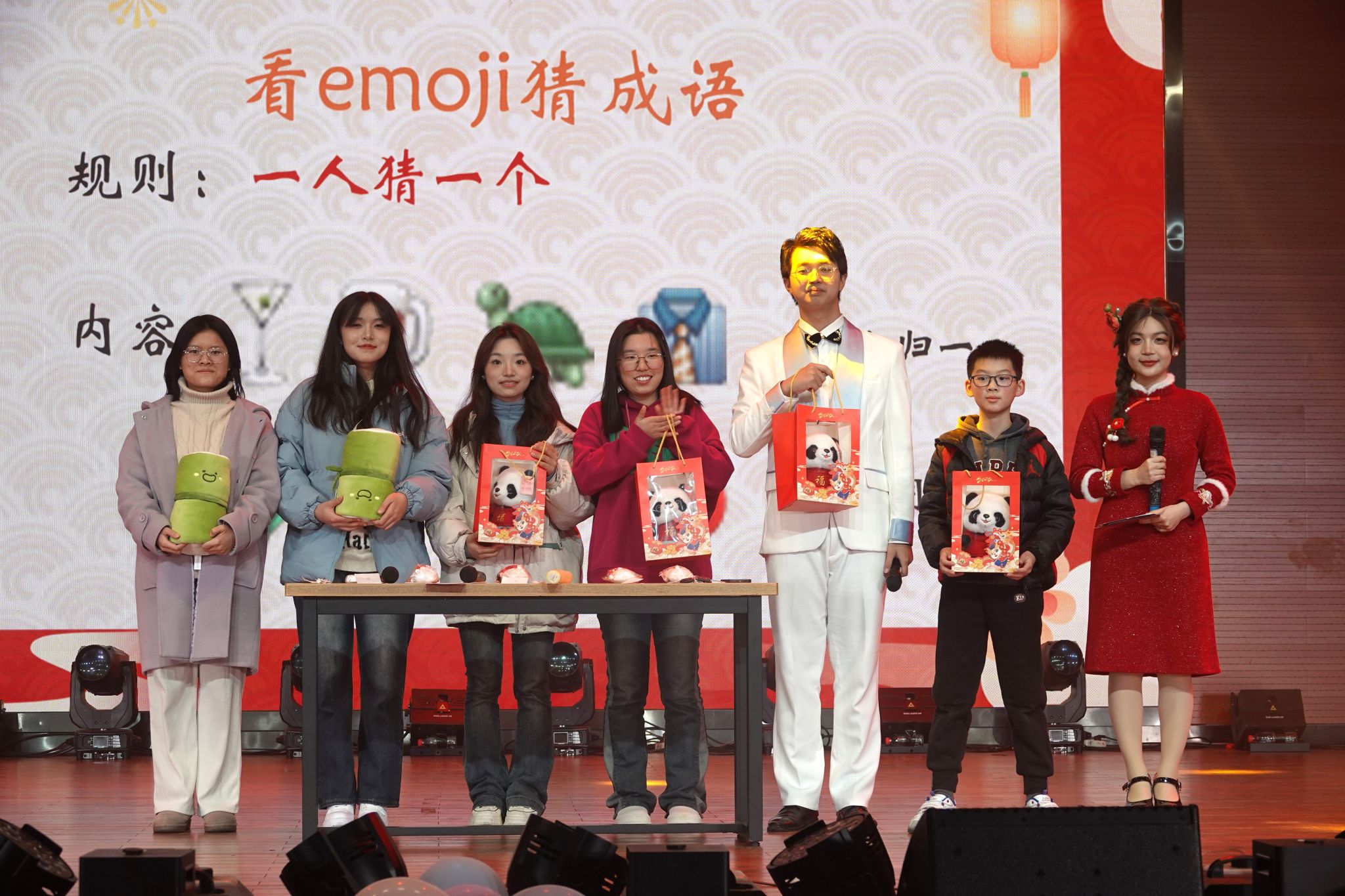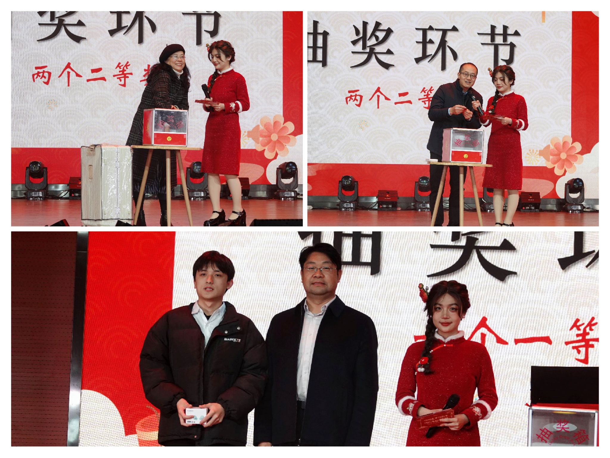 党委书记廖军,执行院长田永秀,副院长胡子祥、李学勇、谢瑜分别上台抽取幸运观众并亲手送上奖品,将新年的第一份惊喜带给现场的同学们。不论是紧张刺激的抽奖,还是趣味十足的互动游戏,观众都热情十足,全心投入。欢笑声与掌声不断将晚会的氛围推向高潮,映衬出马院师生在晚会中共度时光的欢乐与真挚情感。