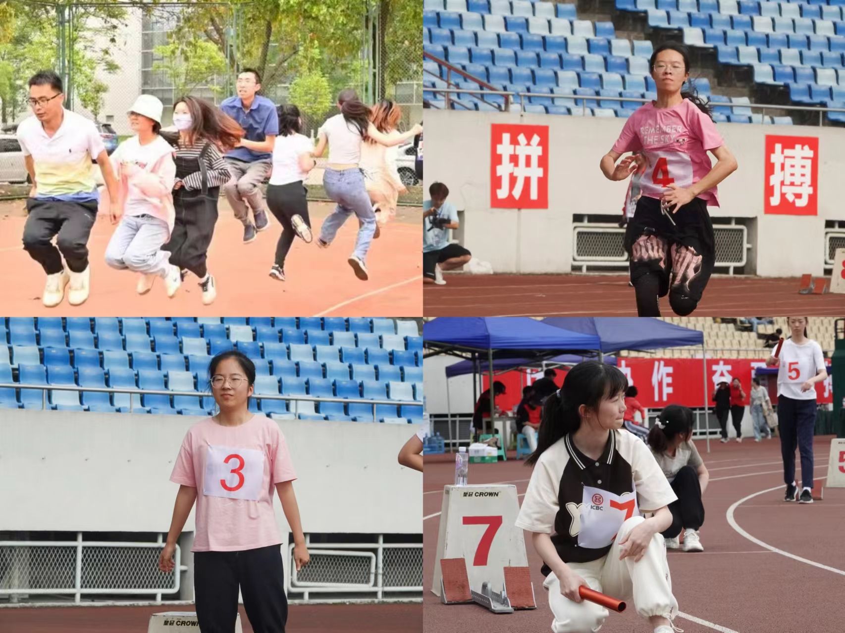 教职工积极参与“足球射门”与“跳长绳”项目,其中在“跳长绳”比赛中取得教工乙组第三名的优异成绩。刘诗妤、曹琳琳同学参加女子100米比赛,其中曹琳琳同学进入决赛并取得学生乙组第四名的成绩,余京蕊、何曼青等同学参加了4×100米女子组接力赛,取得学生乙组第六名的成绩。生命不息,运动不止,他们跃动的身影尽显青春风采。