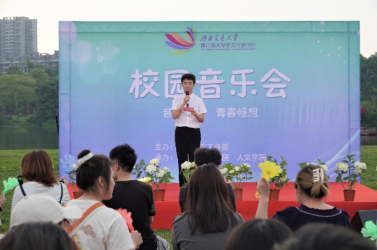 承办的第八届大学生艺术节之“音海徜徉,青春畅想”校园音乐会在犀浦校区北区浙亭旁草地圆满举行。