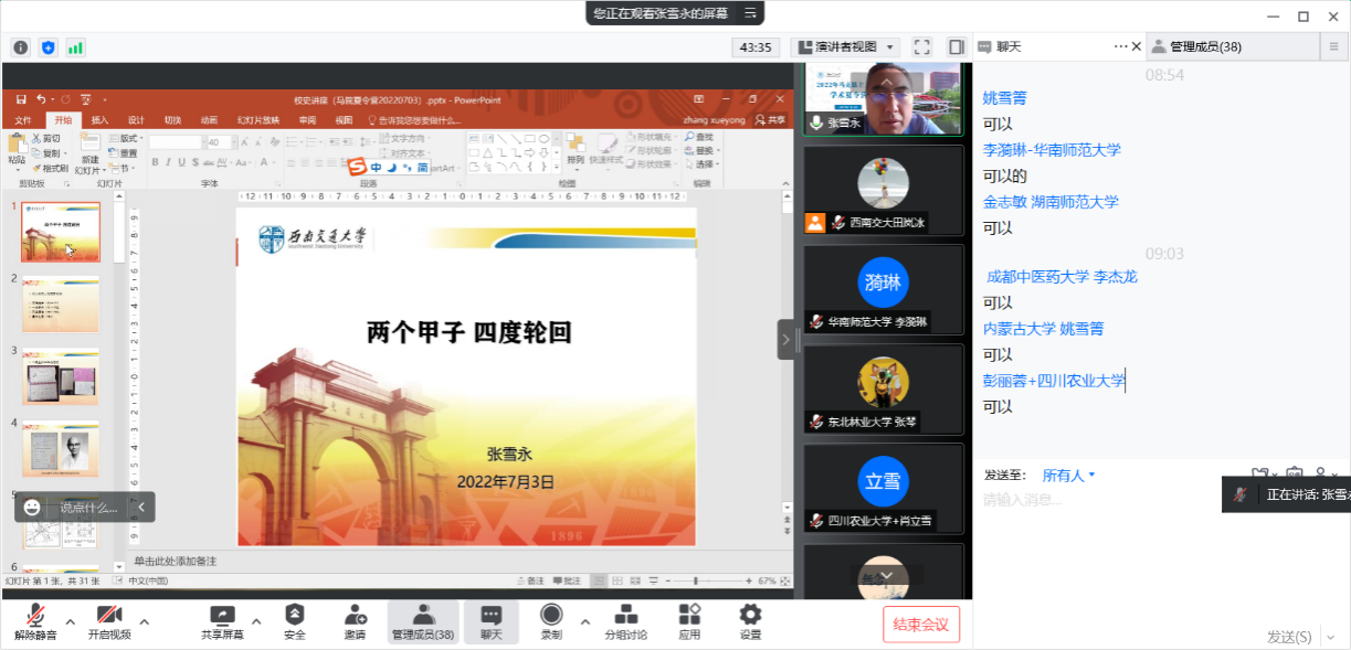 的办学历程,从唐山到成都,从华北到西南,感叹历经整整5万里跋涉、18次迁徙、17次更名的背后,深情讲述“竢实扬华、自强不息”的交大精神。田院长接着讲述午夜av