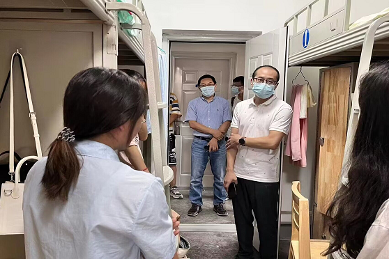 党委书记廖军、执行院长田永秀等领导于9月1日16:30开展了2022级本研新生走访慰问工作,了解学生们疫情防护、入学适应等情况,关心学生日常生活用品是否充足,学习生活是否有困难等。