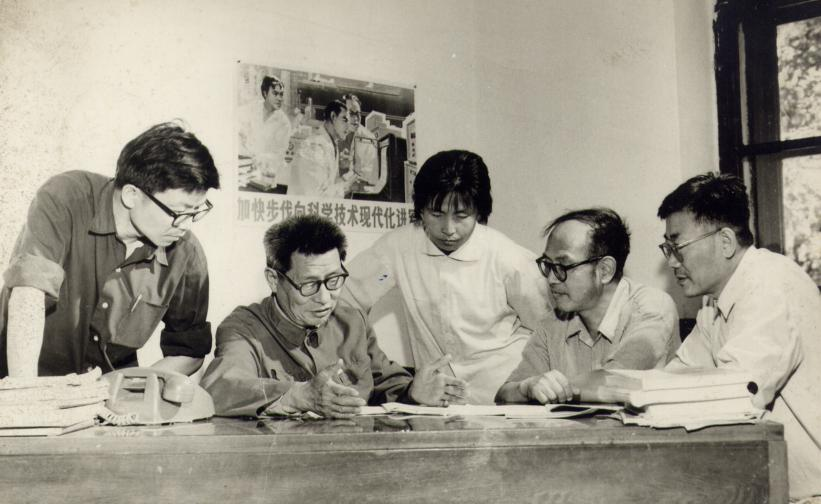20世纪60年代刘恢先(左二)与同事讨论研究生培养计划