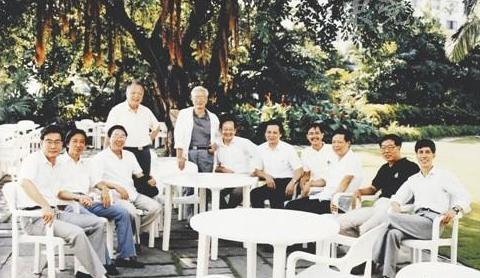 两位岭南建筑大师佘畯南和莫伯治与中青年同行们在一起。自左至右:胡镇中、左肖思、林兆璋、莫伯治、佘畯南、陈开庆、周凝粹、林永祥、曾昭奋、赵伯仁、何镜堂。