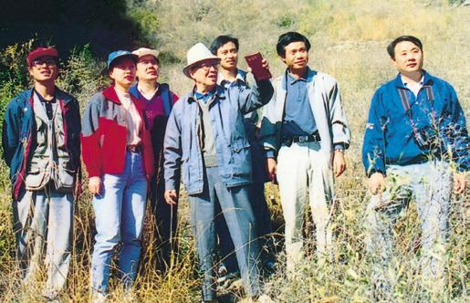 1998年5月,王鸿祯(中)与科研组部分成员在北京西山野外考察