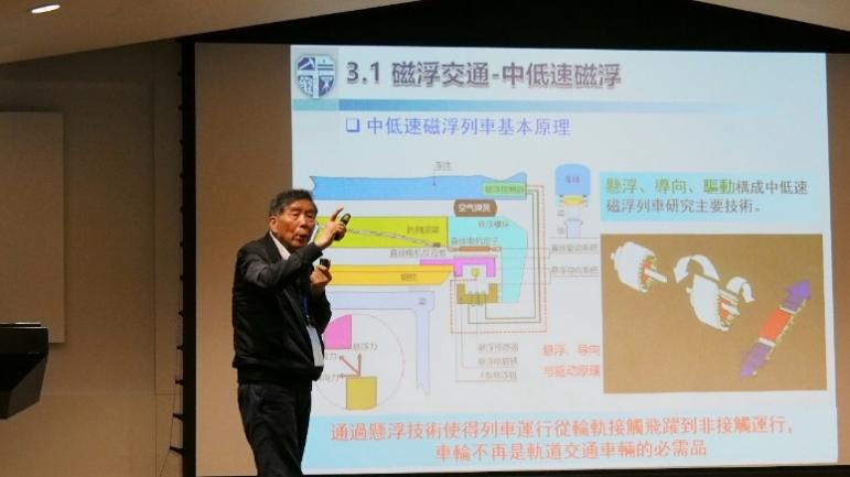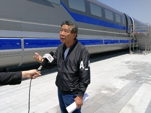 2019年5月钱清泉院士在600公里磁浮列车下线现场(青岛)
