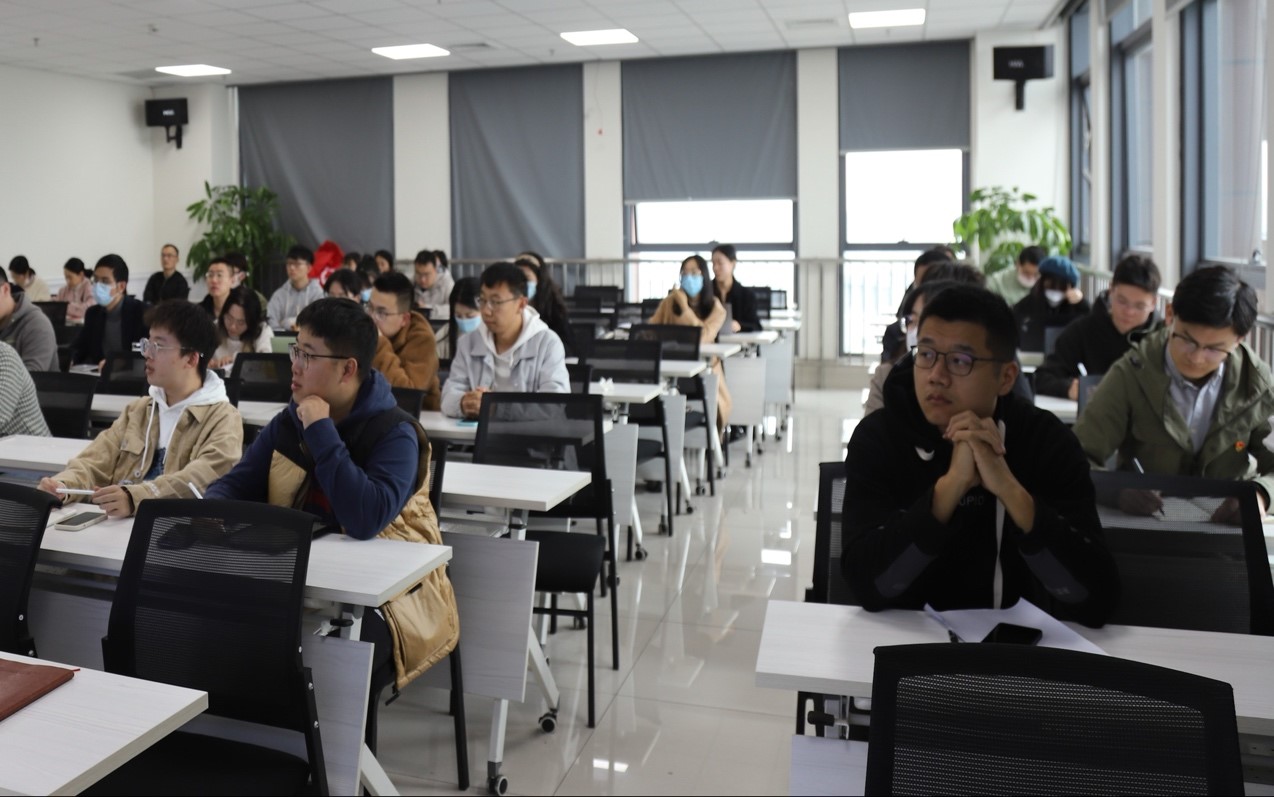 杨桓副教授以学习宣传贯彻党的二十大精神为题,从深刻把握党的二十大主题和主要成果、深刻把握中国式现代化的内涵、实施科教兴国战略,为中国式现代化强化人才支撑、让青春年华在为国奉献中焕发绚丽光彩四个方面进行了精彩讲解。在具体解读党的二十大精神核心内容的基础上,杨桓副教授以生动有趣的现实案例和自身求学经历为讲解素材,给与会党员同志开展了一场集学习与生活智慧于一体的思想盛宴。最后,他在讲解关于科教兴国战略实施过程中培养什么人、如何培养人的问题时,谈到了当前研究生压力大、容易焦虑的现实问题,对此进行了原因分析,从立大志向、打开格局、警惕平淡、直面挑战、进入正向循环等几个方面为研究生们提供了一些建议,让在场党员同志受益颇丰。