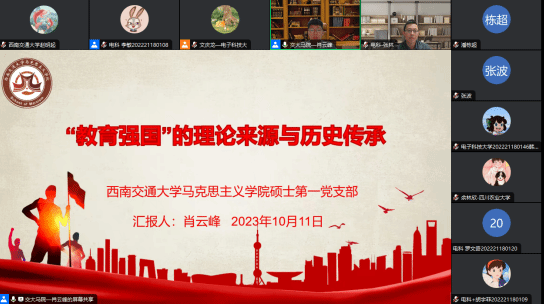 硕士第一党支部于10月11日晚19:30参加“赓续重教尚学优良传统,吹响教育强国建设号角”川内五所“双一流”高校联学联讲活动。