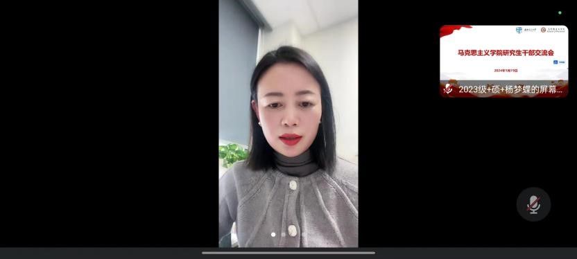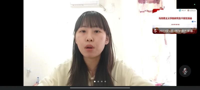 接着,进入研究生干部发言交流环节。2021级博士班班长冷书恒对本学期学生工作进行总结,交流了学习上的问题。2023级硕士班团支部书记王呈剑从生活和学习两个方面开展交流,午夜av