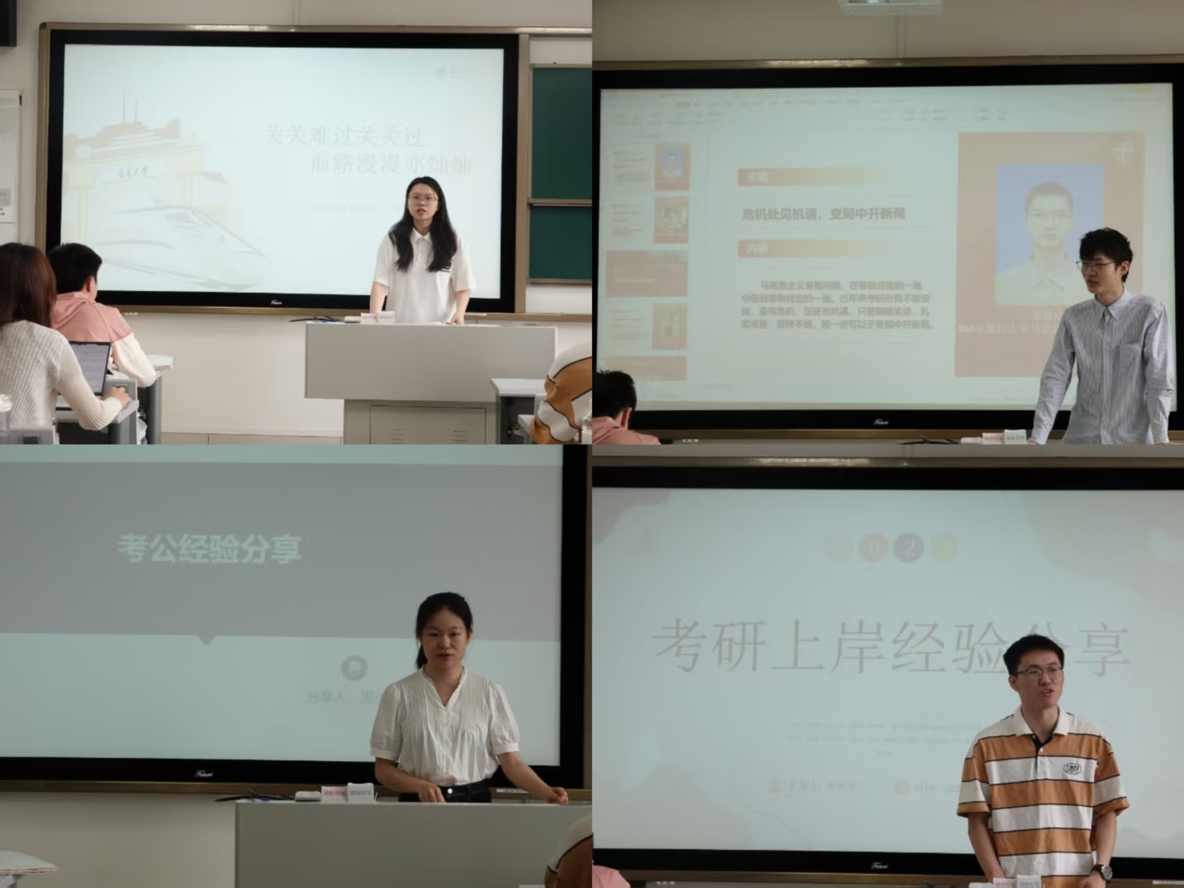学生提供交流平台,搭建成长阶梯。本次分享会邀请了四位在推免、研究生考试、公务员考试中表现突出的同学,他们结合自身经历,为低年级同学分享宝贵经验,助力大家成长成才。