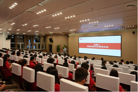 党委书记廖军向149名新生致欢迎词,提出深耕马列经典,筑牢信仰根基;积极实践,提升解决问题能力;言行合一,展现马院学子风范三点期望。