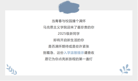 将持续为新生提供优质的教育资源与贴心服务,陪伴他们在马克思主义理论学习与实践探索中不断成长,为国家发展与社会进步贡献青春力量。