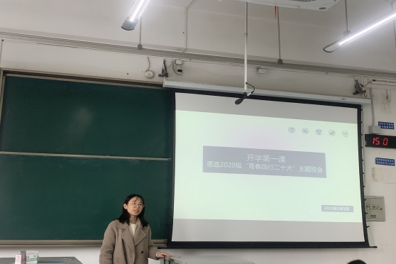 3月3日15:00,思政2020级本科生“青春践行二十大”主题班会在X2429准时召开。首先,辅导员杜晓林老师向同学们展示了升学毕业去向选择,为同学们职业生涯规划做了重要的指导。紧接着,杜晓林老师就保研、考研、考公、出国、就业等选择做了具体的介绍,同学们更清晰地了解了这些选择的往年情况、具体流程、相关条件和注意事项。 最后,杜晓林老师对本学期工作安排做了详细的说明,提醒同学们关于选课、第二课堂、创新学分、请销假和宿舍安全等相关事宜。