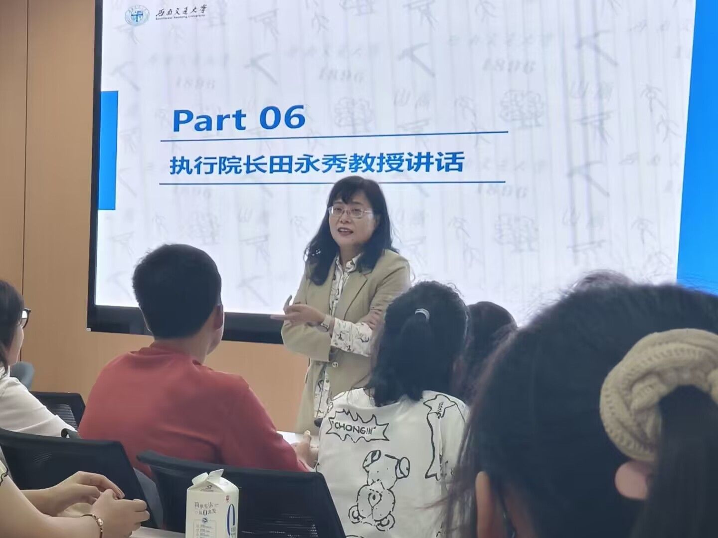 执行院长田永秀教授用亲切热情的话语表达了对新生同学们的欢迎和殷切期盼,强调了思想政治工作是最有价值、最具挑战性的工作,为此,同学们不仅要在大学期间打下坚实的专业知识基础,还要扩大知识面,尤其是努力提高自己与人沟通交流的能力。