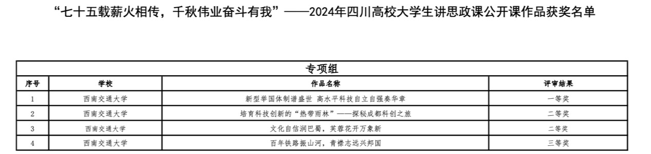 田永秀、马先睿、李学勇老师指导的《新型举国体制谱盛世,高水平科技自立自强奏华章》,荣获教育部全国二等奖、四川省一等奖。该作品紧紧围绕《习近平新时代中国特色社会主义思想概论》第七章第三节教材内容精心设计展示。午夜av