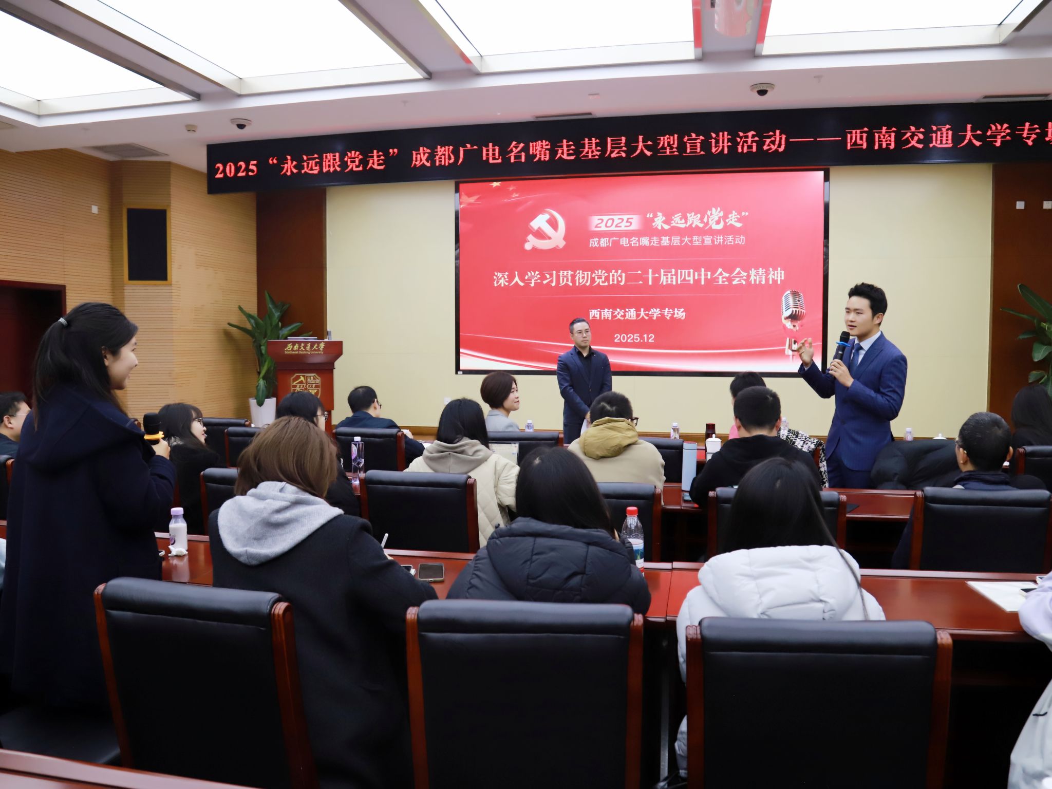 为深入学习贯彻党的二十届四中全会精神,推动党的创新理论在高校落地生根,12月11日上午,2025“永远跟党走”成都广电名嘴走基层宣讲活动——午夜av