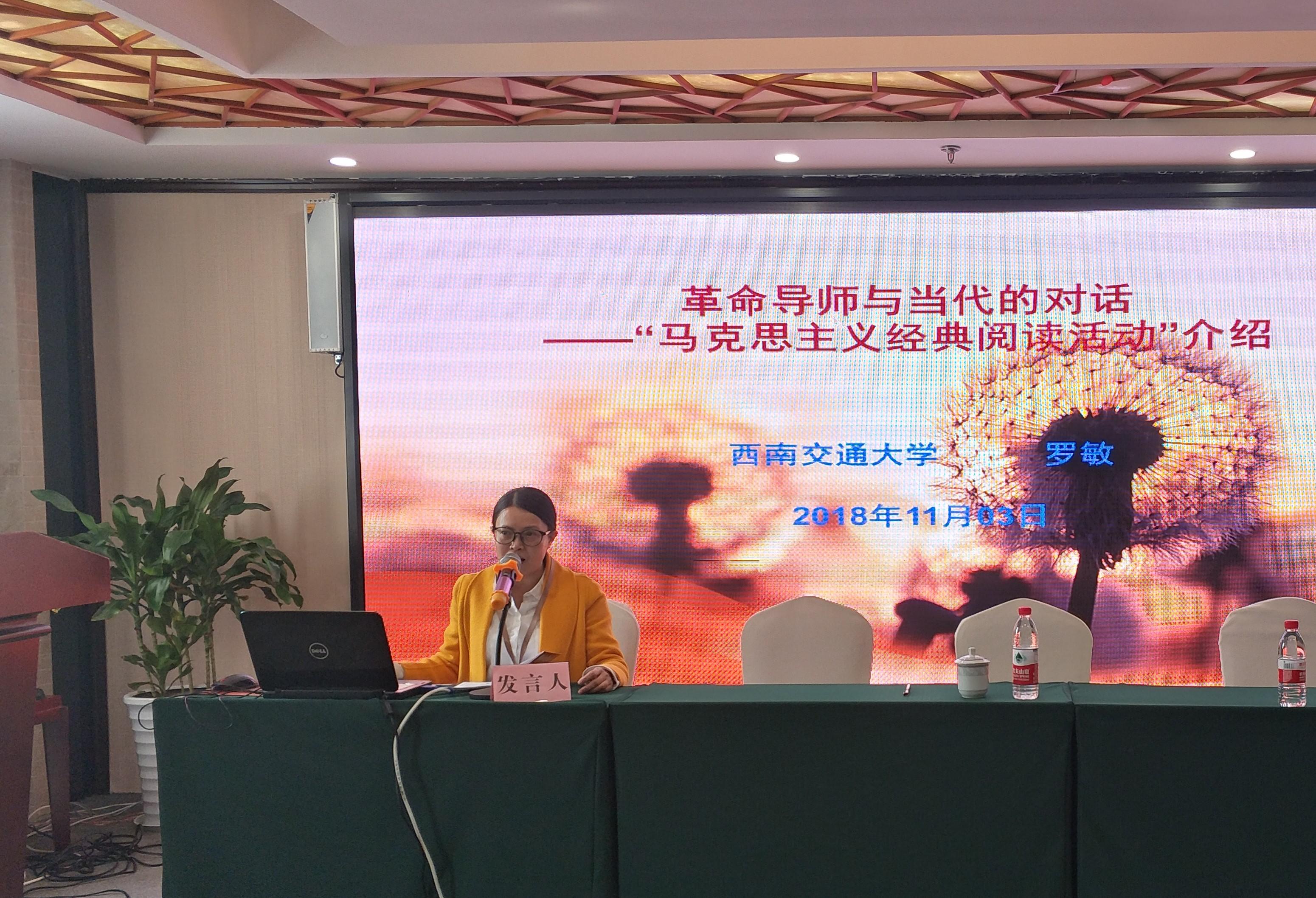 教师罗敏副教授受邀参加了教学研讨会。罗敏老师的发言题目是“革命导师与当代的对话——‘马克思主义经典阅读活动’介绍”。罗敏老师的发言,分析了马克思主义经典阅读进入课程教学环节的缘由与意义,展示了本院马原课阅读经典篇目,阐述了经典阅读的具体环节和操作过程,分享了经典阅读活动开展应该遵循的基本原则。报告受到与会专家和教师的一致好评。
