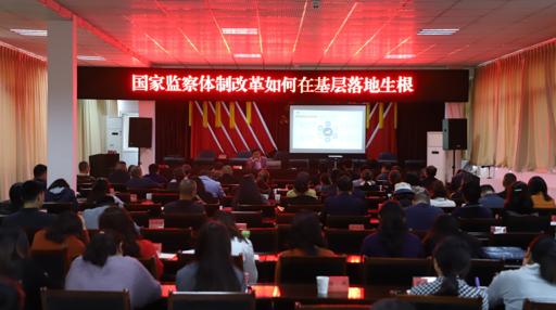 博士宣讲团开展活动的基本情况。然后他简要介绍了国家监察体制改革的缘由以及监察委员会的性质、职能和对象,并以当前基层腐败的现状为切入点,将党和国家的主要政策精神与具体实践有机结合起来,深入浅出的讲解了国家监察体制改革如何在基层落地生根及其在监督执纪“四种形态”中的具体运用。