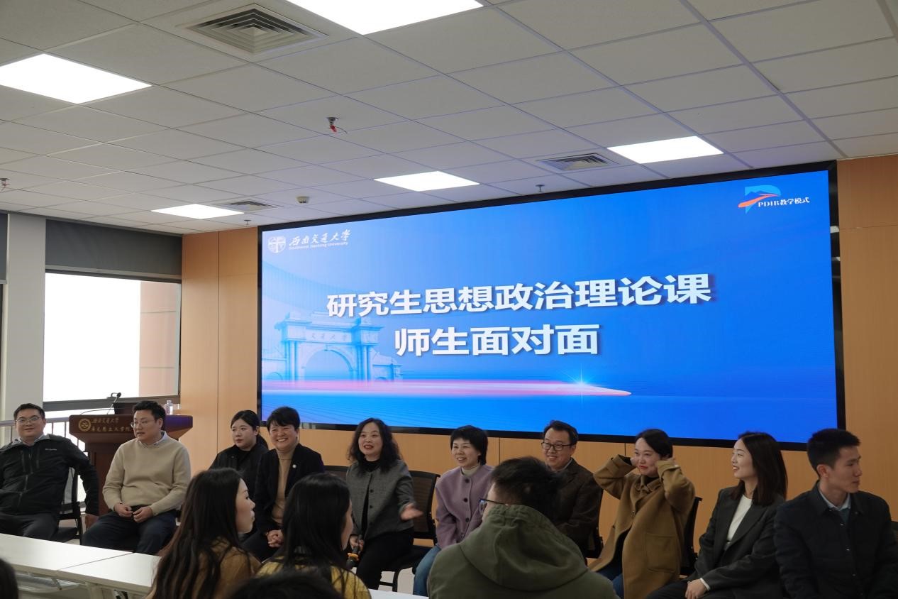 研究生思政课“师生面对面”第三期活动在犀浦校区3号楼31325会议室隆重举行。本次活动的主题是“以真心换真心,实现教与学双向奔赴”,共邀请10位研究生思政课教师代表、56位2025级硕士研究生和11位2025级博士研究生等学生代表齐聚一堂,展开了一场真诚而深入的对话。活动由教育部教指委委员、午夜av