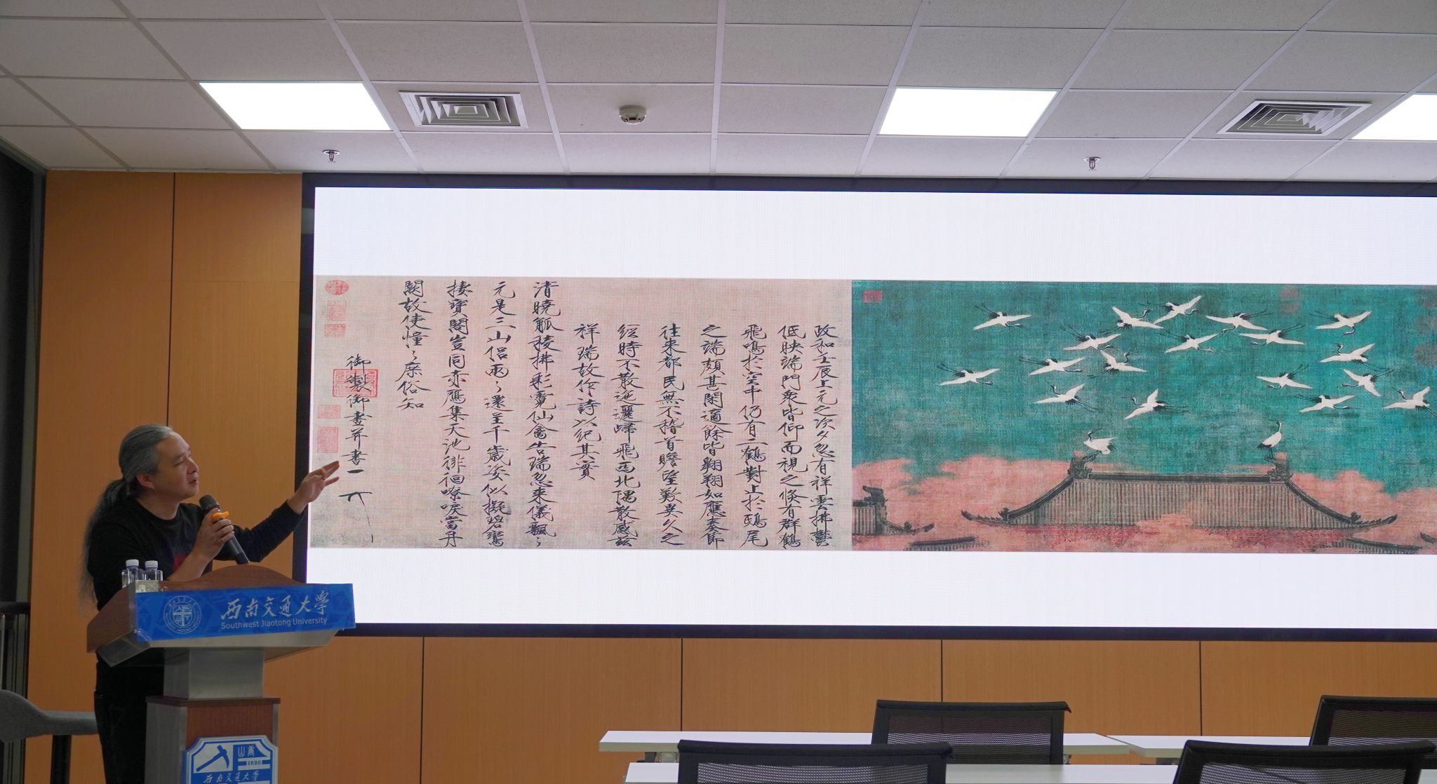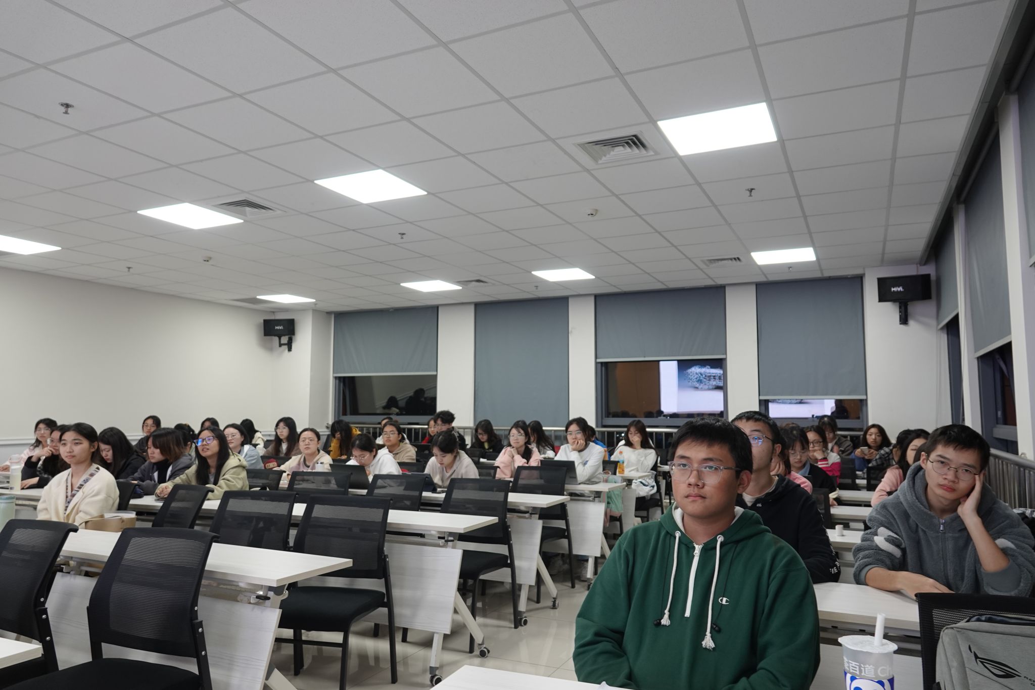 王永亮老师以陶瓷与生活为主题,结合自身求学和工作经历,以幽默亲切的方式,向大家展示了自己的作品。无论是求学阶段载着乡愁的火车,还是工作中因茶漏触发的灵感,都生动体现了艺术气息与烟火气的完美结合。王老师强调,艺术首先要有市场定位,艺术家们要立足市场需求进行创作,艺术源于生活,最终也要应用于生活。这正如马克思先生所言,美学与社会发展密切相关,美学是一种反应社会现实的艺术形式。随后,王老师又凭借其丰富的知识体系和独到的审美标准,为同学们介绍了古代陶瓷及其烧制的历史背景。无论是宋代五大名窑还是明青花都启发了同学们全新的审美角度,同学们得以将艺术概念从理论理解层面转变为更生动的现实体验。王老师打破常规,没有使用过多的文字介绍,而是通过一张张图片,带给同学们强大的视觉冲击,使同学们沉浸式体验艺术之美。
