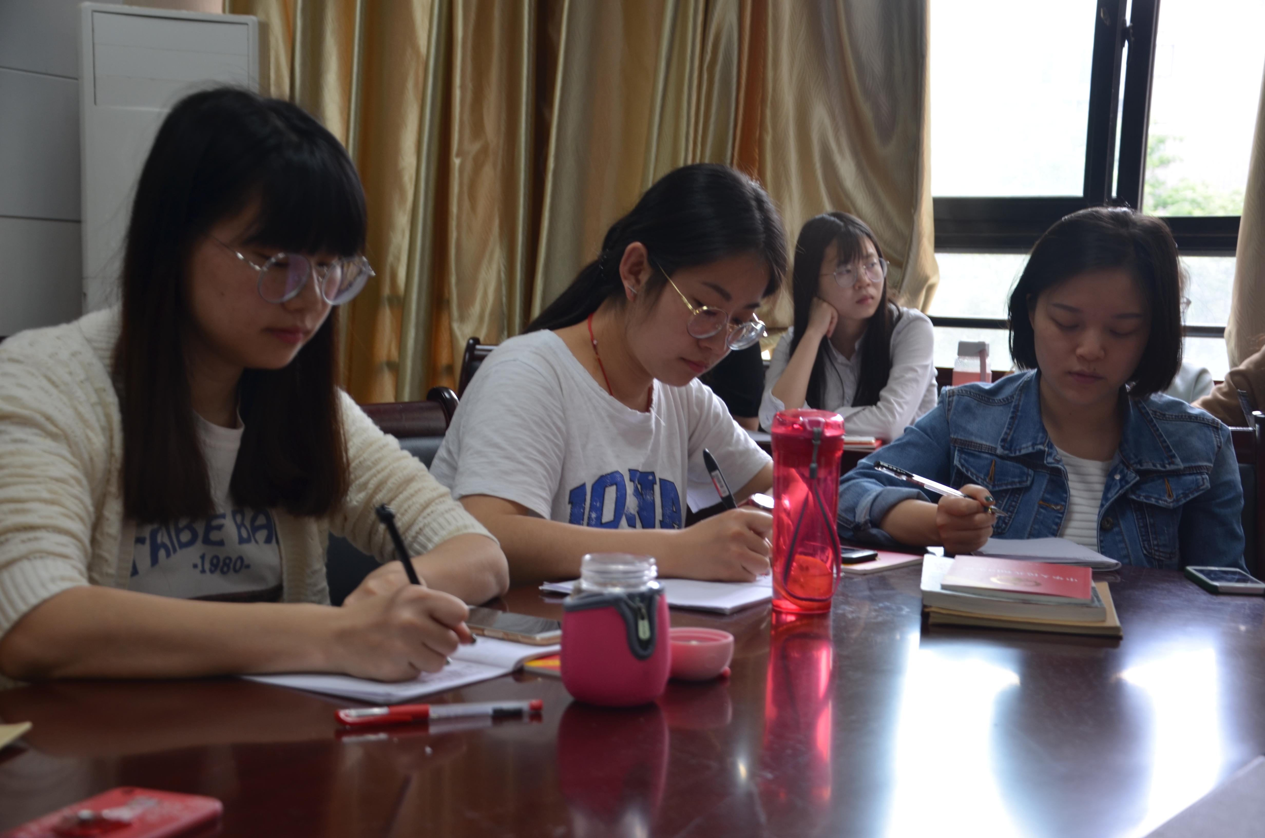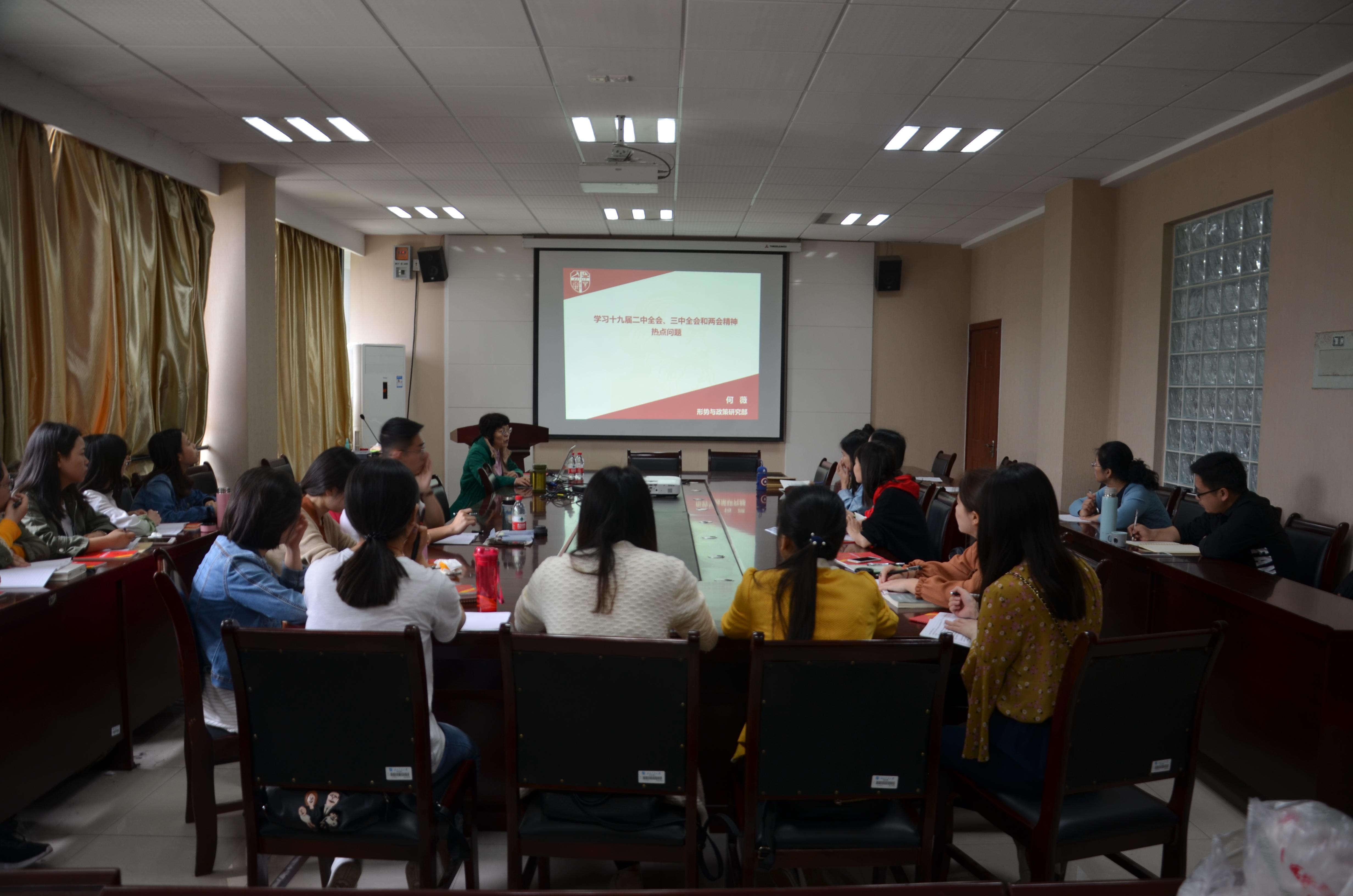 形势与政策教研部主任,副教授、硕士生导师何薇博士,以“学习党的十九届二中、三中全会精神、全国两会精神”为题进行解读,17级硕士生党支部全体成员参加,此次时政热点研读由党支部书记邓丽华主持。