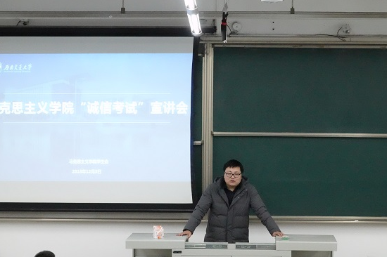 诚信考试教育会在12月3日19时于2218举行。刘晓玲、景星维、王迎迎、赵晨四位老师和全院本科生参加会议。