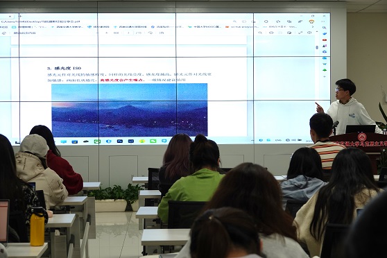 最后,他向同学们介绍了拍摄后期的修图技巧,并现场演示了使用LR调色批量处理和PS常用功能后期修图的步骤。