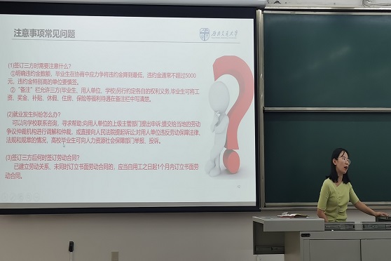 最后,杜老师向同学们讲解了签约等就业管理方面的意事项,尤其是对校招面试进行了指导。