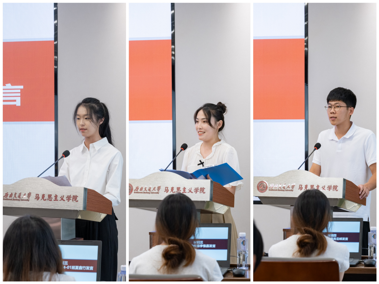 夏鑫竹代表本科新生分享了初入校园的感想与对未来的憧憬。退伍军人李惟嘉和多次前往川藏线调研的肖云峰,分别代表硕士新生和博士新生进行了精彩发言。