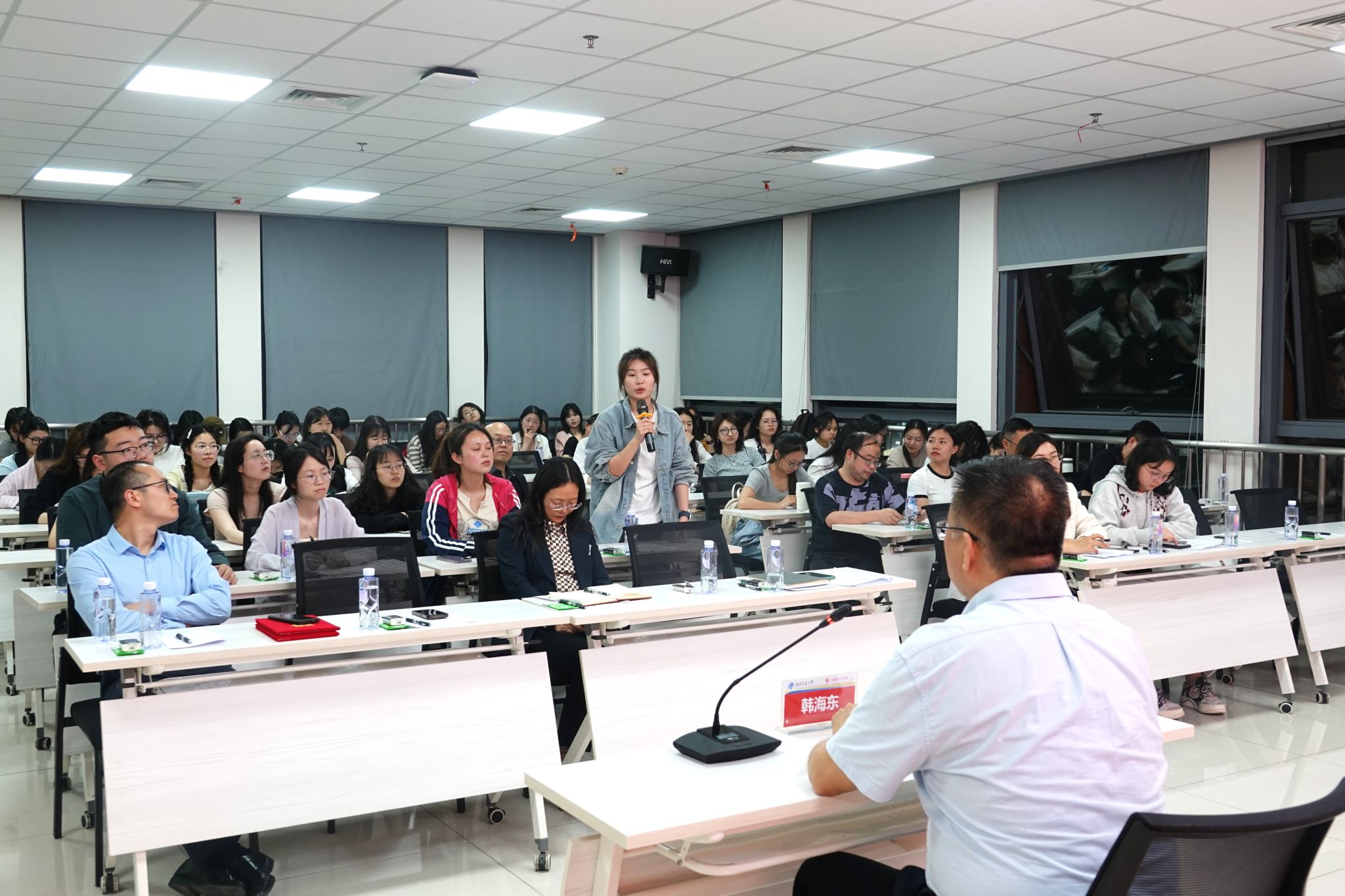 最后,在行动建议部分,韩海东为学生就业提供了切实可行的方法。他建议学生通过提升专业能力、把握政策红利、研究就业政策、规避竞争红海等方式,精准掌握就业主动权。同时,要运用马克思主义原理指导职业规划,在工作生活中平衡好各方面关系,做到“适合的就是最好的”。互动环节,同学们踊跃参与,韩海东耐心解答,为同学们精准把脉,指点迷津。