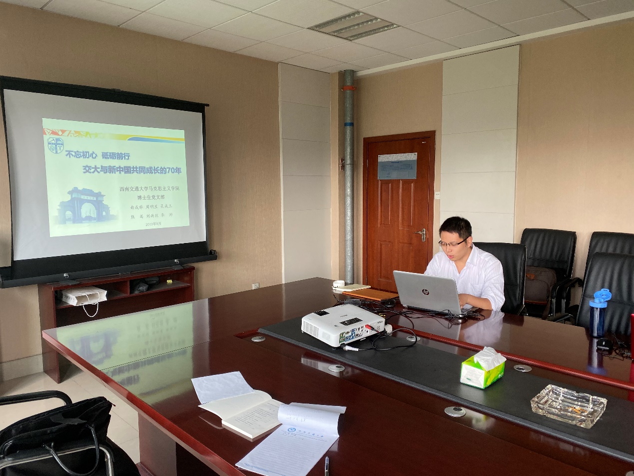 “不忘初心、牢记使命”主题教育工作安排》;其次,支部成员学习了习近平总书记在内蒙古考察时勉励大学生的重要讲话精神,并就讲话精神展开了讨论;最后支部成员结合自己的研究方向,以《新中国铁路70年的辉煌成就》《新中国成立以来党领导抗震救灾工作的历程与历史经验》《交大与新中国共同成长的70年》《新中国成立70年来扶贫(政策)的改革与演变》为题作报告,分别从新中国成立70年来我国铁路建设、震救灾工作、扶贫工作和午夜av