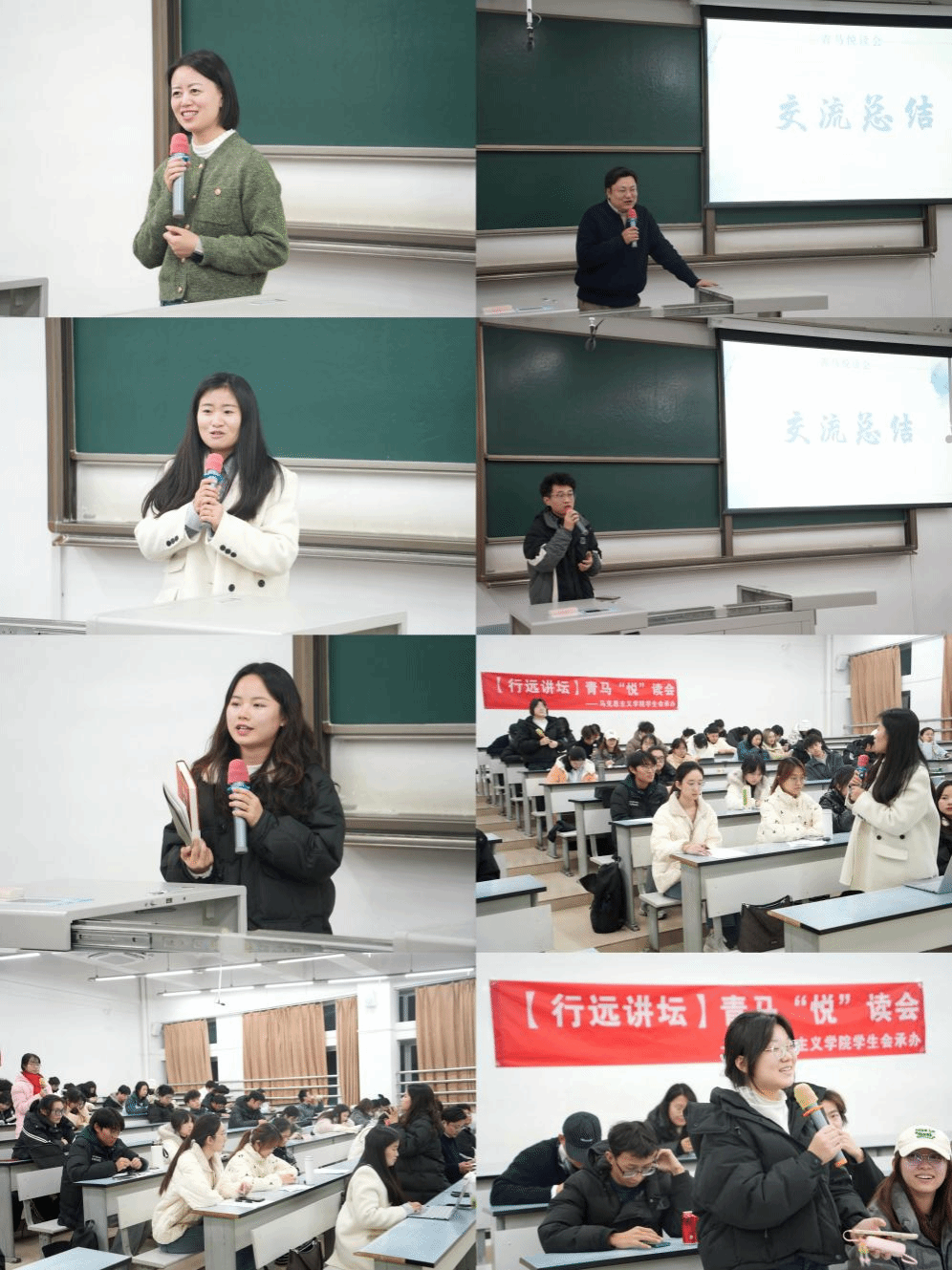 在阅读展示结束后,各位领读教师分别对相应书目进行了点评与延伸指导。龚安静从历史语境和当代意义两个维度对《家庭、私有制和国家的起源》展开分析,并对如何阅读马克思主义经典提供了建议;谢汶兵鼓励大家精读经典,并借鉴《暗时间》中的学习方法,将书“读薄、读厚、再读薄”;李潘介绍了《经纬华夏》的叙述逻辑,表示希望继续和小组成员深入挖掘书本内容;景星维联系思想政治教育与个人成长,探讨《遇见未知的自己》中的“内省”对当代大学生的哲学价值;邓秀芸在总结中充分肯定本次阅读会的组织形式与学生的积极参与,并对“青马悦读会”未来的内容设计、交流形式与育人功能提出展望。交流氛围亲切而热烈,同学们围绕阅读过程中的困惑和书中观点踊跃提问,老师们结合自身研究与阅读经验一一回应,进一步激发了大家的思考与讨论。